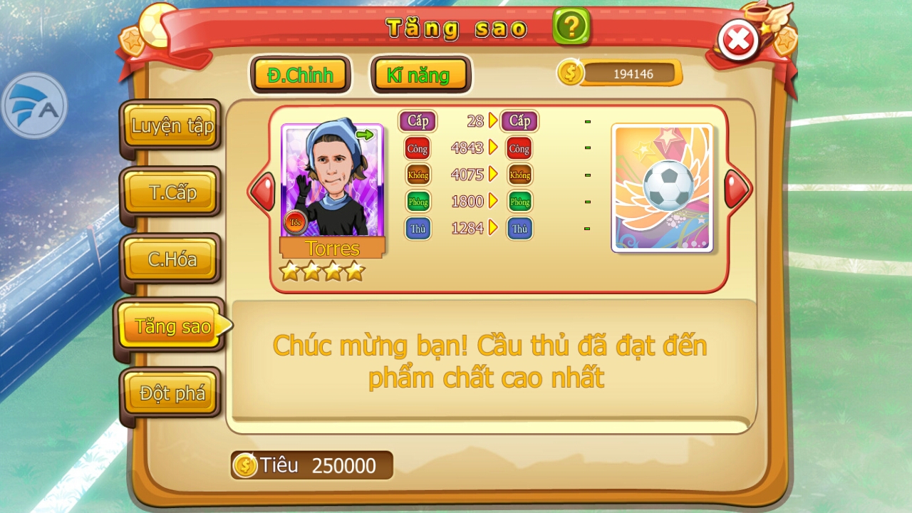 Nâng cấp sao của cầu thủ đạt đến mức tối đa.